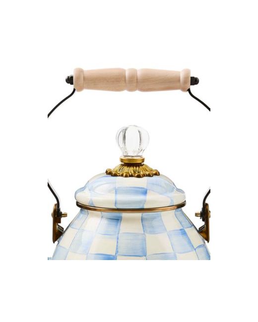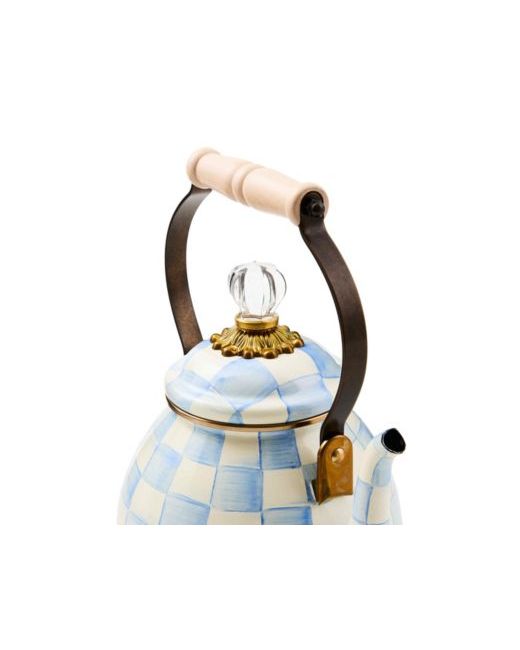 Elevate your kitchen with this MacKenzie-Childs tea kettle featuring a heavy-gauge steel underbody finished with hand-painted checks. A clear glass knob sits on top, adding an elegant detail that completes the design.