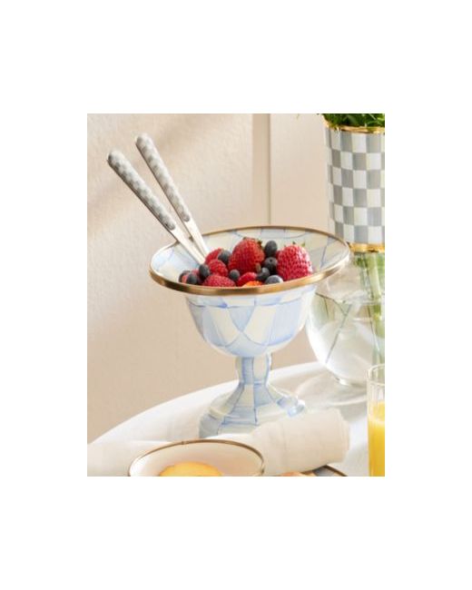 Create a memorable presentation with this MacKenzie-Childs large compote, showcasing artisan, hand-painted detailing that lends rich character and intricate depth. A sturdy steel core paired with a bronzed stainless-steel rim enhances strength while maintaining a polished serving experience.