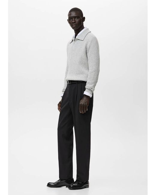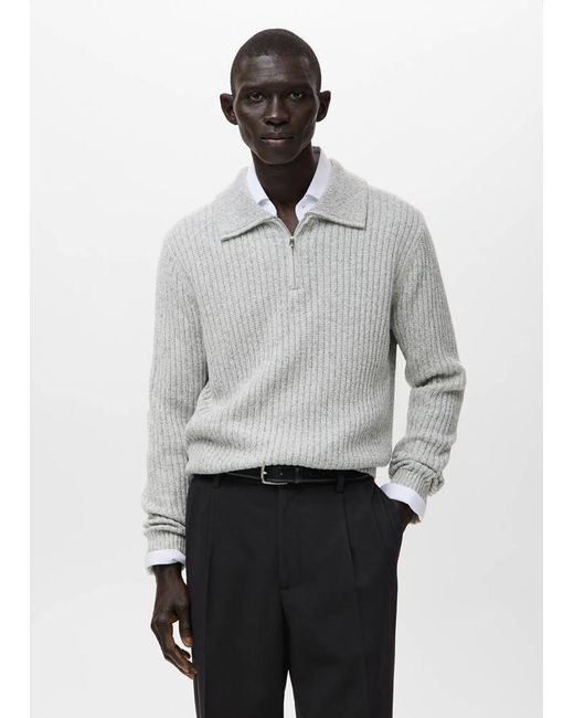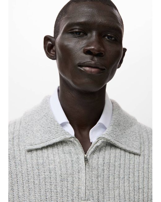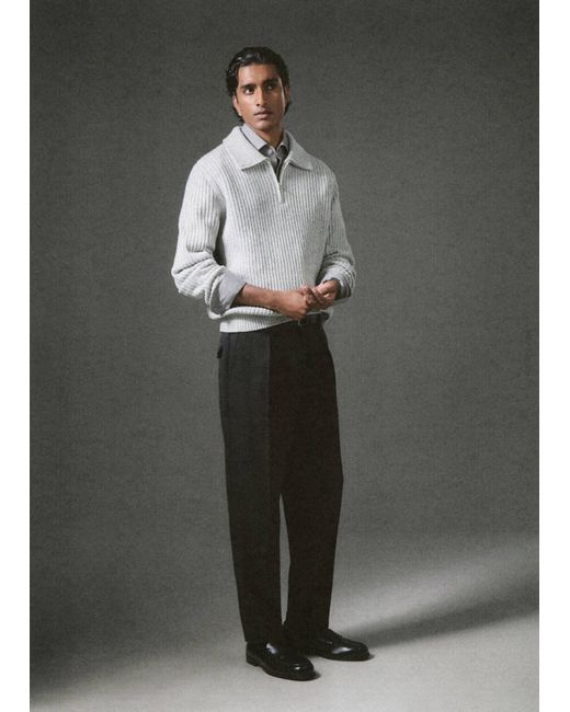 The light grey model is an online exclusive, Regular fit, Wool mix fabric, Straight silhouette, Cable knit, High neck with zip closure