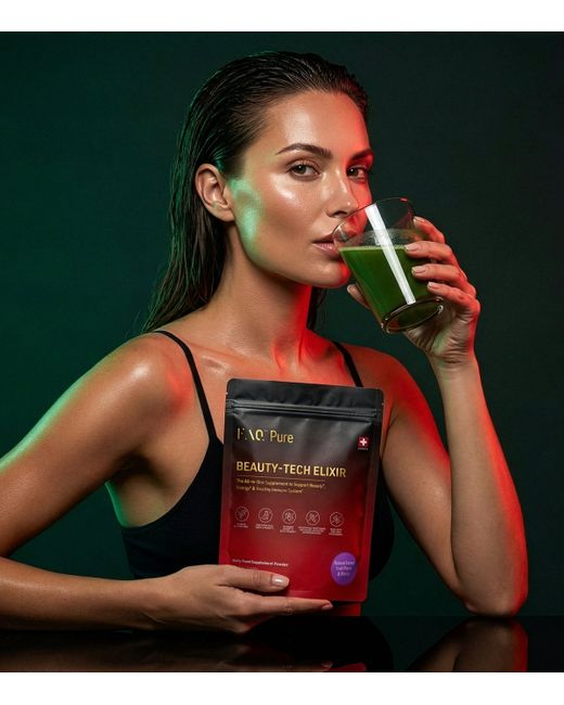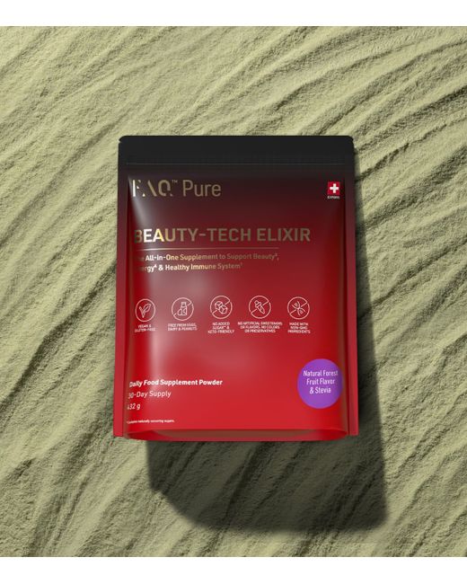 The product of over five years of development, faq’s Pure Beauty-Tech Elixir offers a specifically engineered approach to supplementation. Each of the 85 active ingredients – including advanced beauty and longevity compounds such as nad+, magnesium, CoQ10, quercetin, creatine and super mushrooms – is specifically selected for optimised function, synergy and bioavailability, resulting in improved skin, hair and nail health, digestion, immunity, hormone regulation and much more.