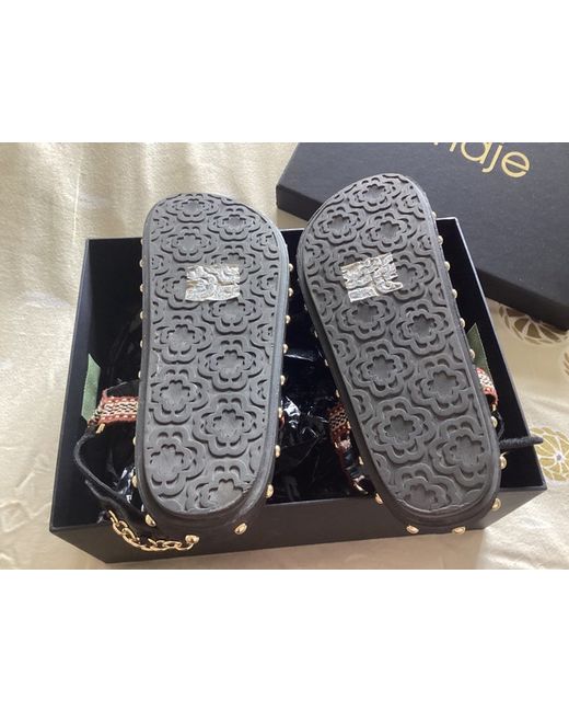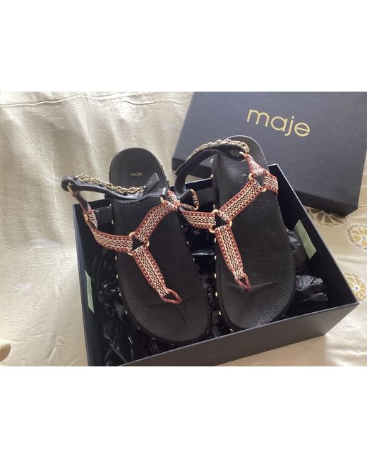The Maje toe post sandals are a stylish and versatile option for women. Made from canvas type, these brown sandals feature studded accents and a flat heel, making them perfect for everyday wear. With a standard shoe width and a thong style design, these sandals are both comfortable and fashionable. The Maje brand ensures high quality and attention to detail, making these sandals a must-have for any woman's footwear collection. They are not readily available on UK websites and cost in excess of £320 in 2025.