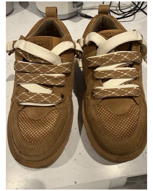 These Ugg trainers in size 4 are a stylish and comfortable choice for women looking for a casual shoe. The low top design, lace up closure, and rubber outsole make them suitable for everyday wear, while the suede upper material adds a touch of luxury. The brown colour and logo accents give them a trendy look, perfect for the winter season. With the Ugg Classic product line and standard shoe width, these trainers offer both style and comfort for women on the go.