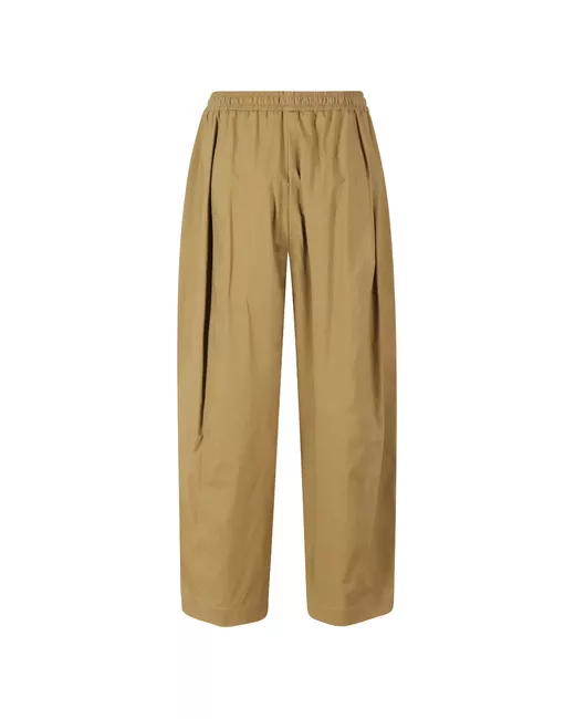 beige cotton elasticated drawstring waist two side welt pockets balloon silhouette tapered leg regular fit