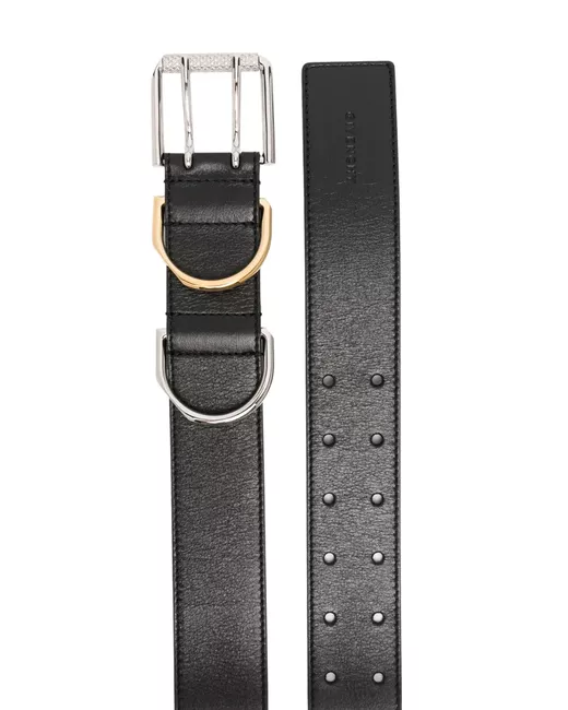 black calf leather debossed logo to the front punched holes silver-tone buckle fastening gold-tone hardware adjustable fit