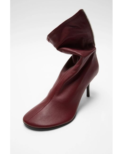 Ankle boots featuring tonal center seams, a metal zipper and branded pull tab at the rear, and a structured sole.