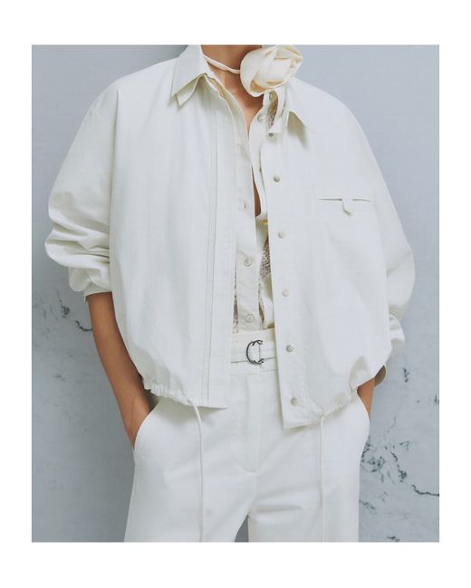 The main fabric contains organic cotton, a fibre derived from organically grown cotton plants Parachute canvas jacket Regular cut Shirt collar, dropped shoulders and a fastening with only the top button visible Buttoned welt breast pocket Waist drawstring with tonal metal aglets The accessory is not included with the garment