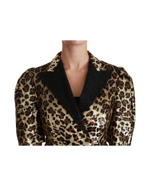Dolce & Gabbana Gorgeous brand new with tags, 100% Authentic DOLCE & GABBANA blazer jacket. Model: Blazer jacket, short sleeve Color: Gold brown leopard pattern, black floral brocade collar Four snap button closure Black silk stretch inner lining Logo details Made in Italy Very exclusive and high craftsmanship Material: 64% PVC, 14% Silk, 14% Polyester, 2% Acetate, 2% Rayon, 1% Elastane Lining: 94% Silk, 6% Elastane