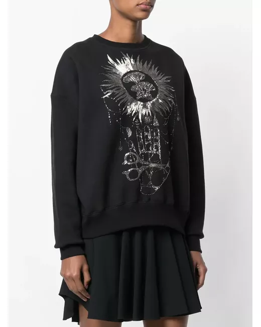Alexander McQueen is renowned for being the champion of eye-popping theatrics, toughening up everyday accessories with gothic romanticism. This black cotton embroidered sweatshirt from Alexander McQueen features a crew neck, beaded embroidery and a ribbed hem and cuffs.